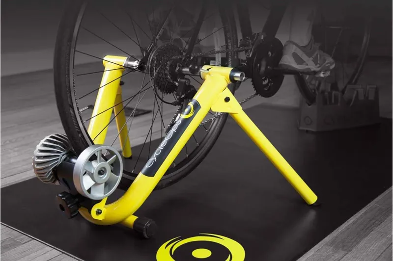 If you want to give indoor training a try but don’t want to break the bank on the latest smart trainer the Cycleops Fluid Yellow Turbo Trainer is a good choice.